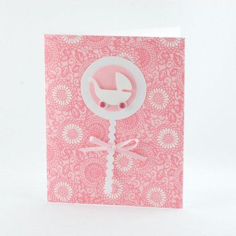 Beautiful Japanese chiyogami paper is used as the backdrop for this baby card. This card is a perfect greeting for the expecting mom, a baby shower or even for the expecting dad!