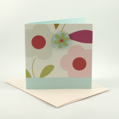 Beautiful flower paper is set on light blue cardstock for this card. The card is perfect for Mother’s Day, birthdays, a quick thank you or as an anytime greeting.