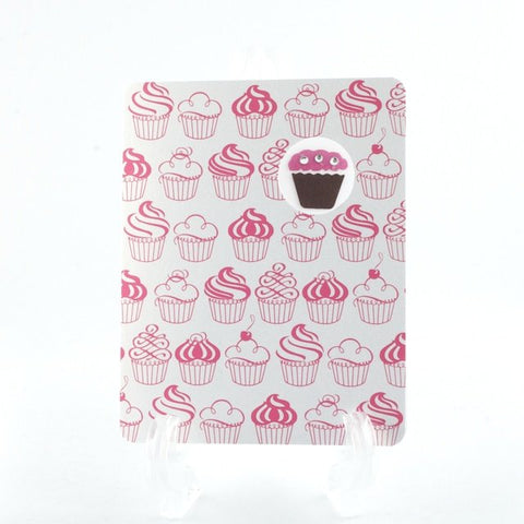 Choose from hot pink or raspberry on white paper, white cupcakes on pink, or chocolate brown on pink paper.