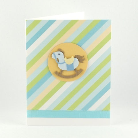 This cute baby rocking horse is perfect for the expecting parents! Shades of green, blue, peach and white with a cute horsey are perfect for a weddinng shower!